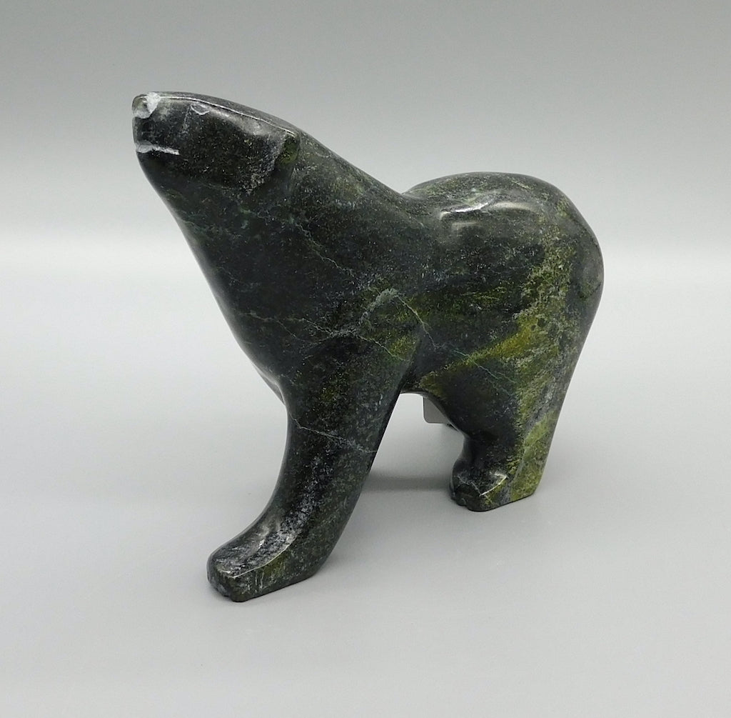 All our Inuit sculptures are carved from a single piece of stone, locally sourced from the carvers community, most commonly Serpentine or Argillite. These stones are carvable but are significantly harder than soapstone.