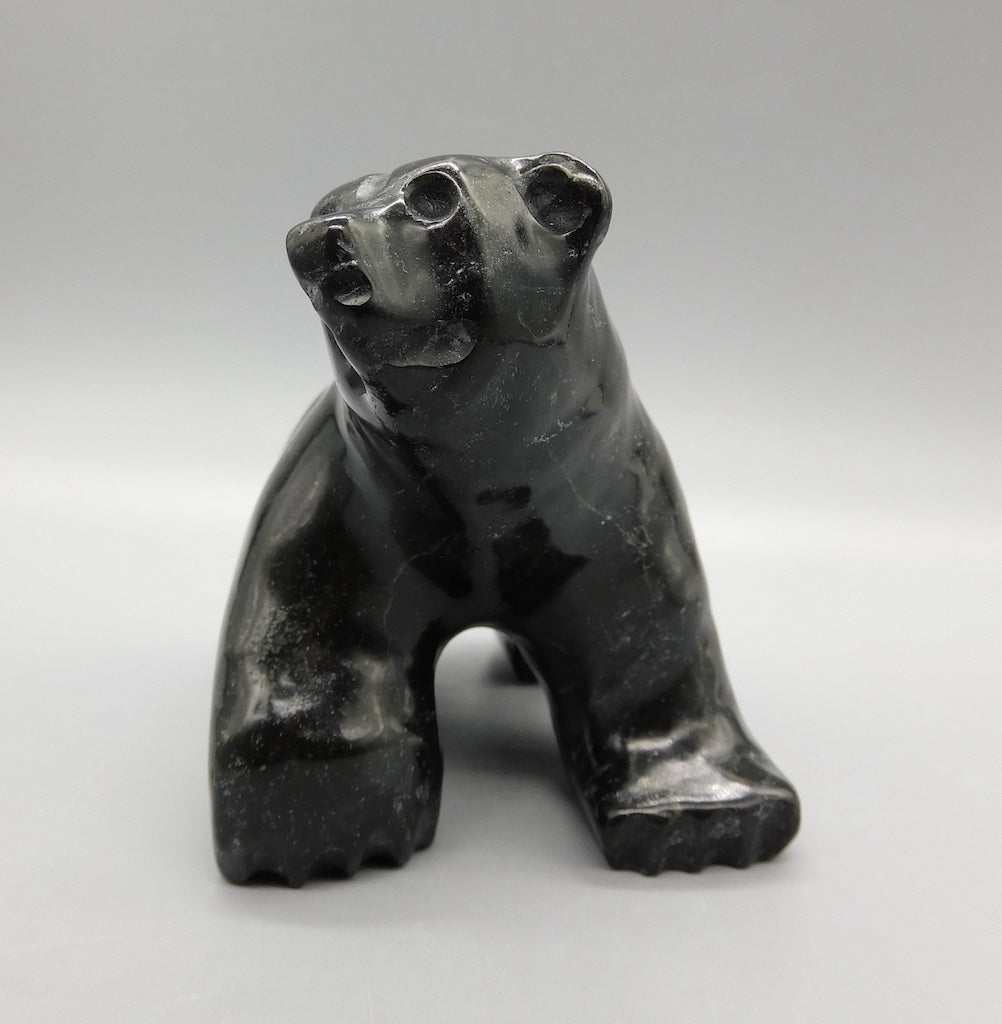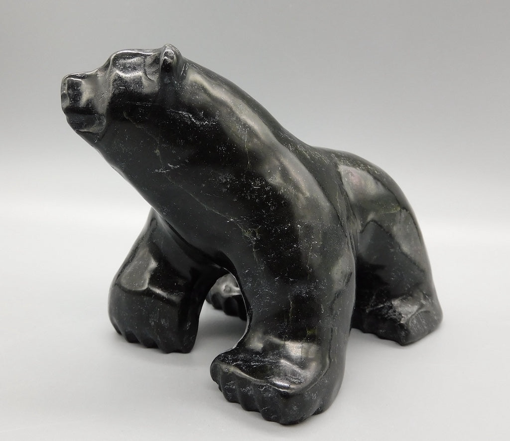All our Inuit sculptures are carved from a single piece of stone, locally sourced from the carvers community, most commonly Serpentine or Argillite. These stones are carvable but are significantly harder than soapstone.