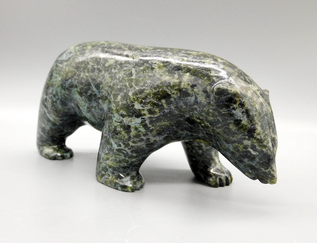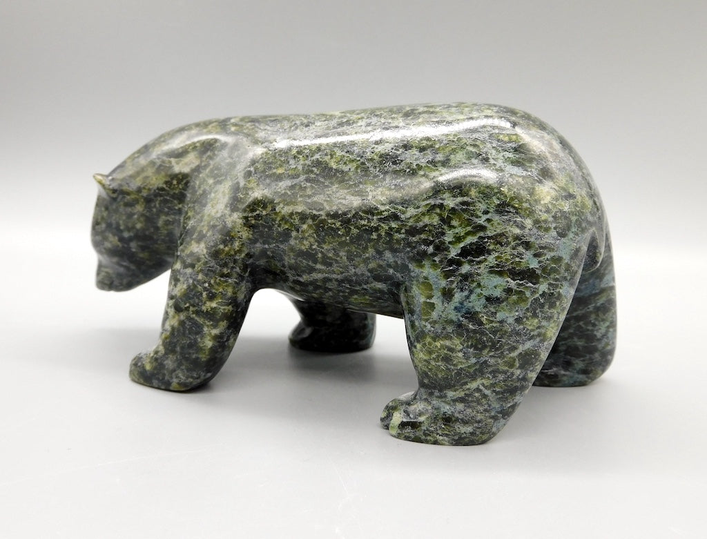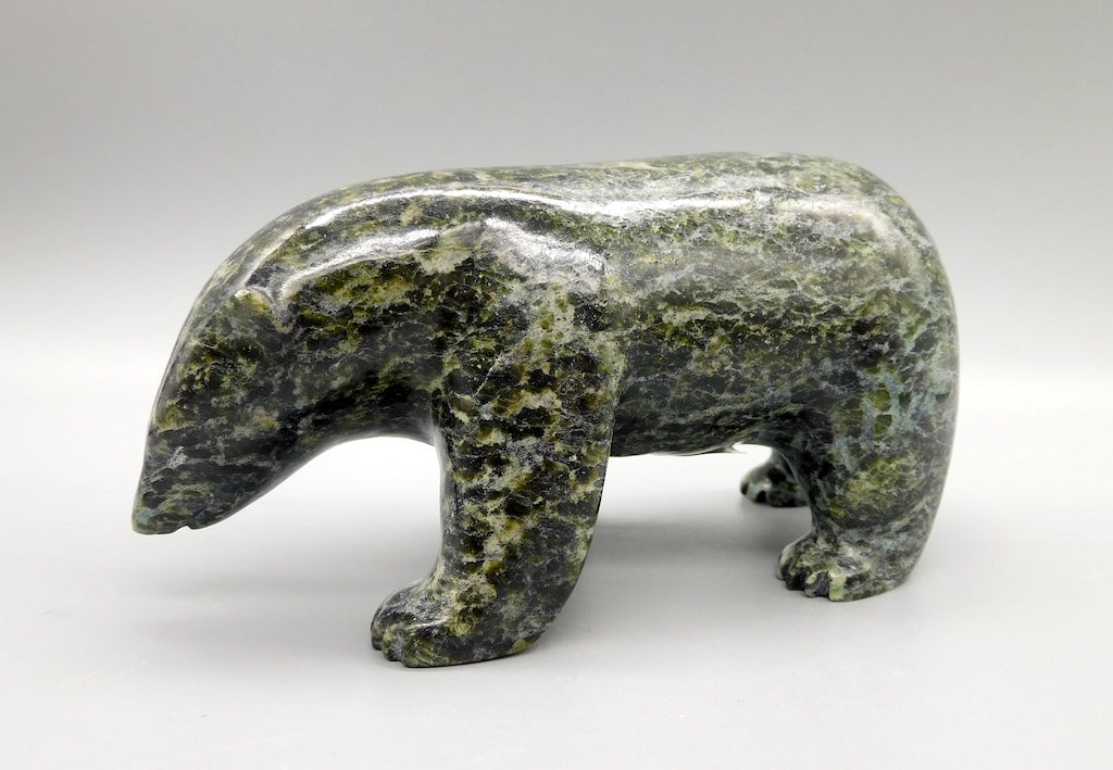 All our Inuit sculptures are carved from a single piece of stone, locally sourced from the carvers community, most commonly Serpentine or Argillite. These stones are carvable but are significantly harder than soapstone.