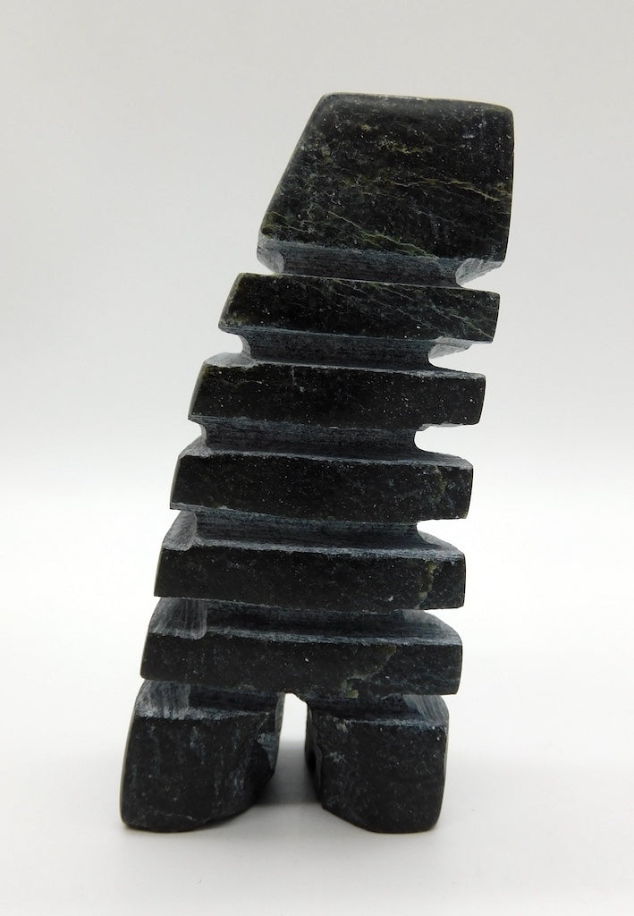 All our Inuit sculptures are carved from a single piece of stone, locally sourced from the carvers community, most commonly Serpentine or Argillite. These stones are carvable but are significantly harder than soapstone.