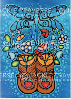 Jackie Traverse is a multi-disciplinary First Nation female artist who calls the city of Winnipeg home. A large portion of her work contains a combination of popular and traditional cultural reflections, which she portrays through her knowledge of urban living, contemporary visual art, traditional craft, and her own cultural practices. She works in many mediums from painting in oils and acrylics to mixed media, sculpture and stop motion animation.