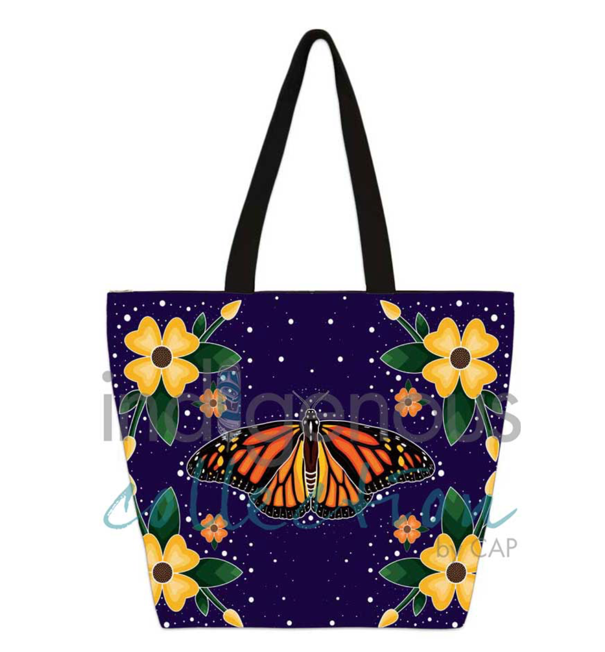 They are fully lined with an inside pocket, cotton handle and zipper closure. Each tote features authentic indigenous art and the artist or copyright holder are paid a royalty on each sale.