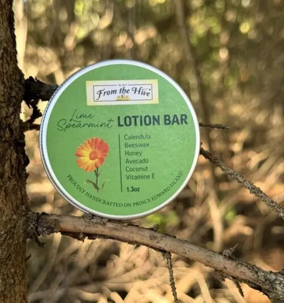 Our Lime/Spearmint lotion bar has a light moisturizing base of Calendula, Unpasteurized honey, Avocado, Coconut, Pure Beeswax and Vitamin E. to help nourish your skin and with added pure essential oils of Lime and Spearmint.