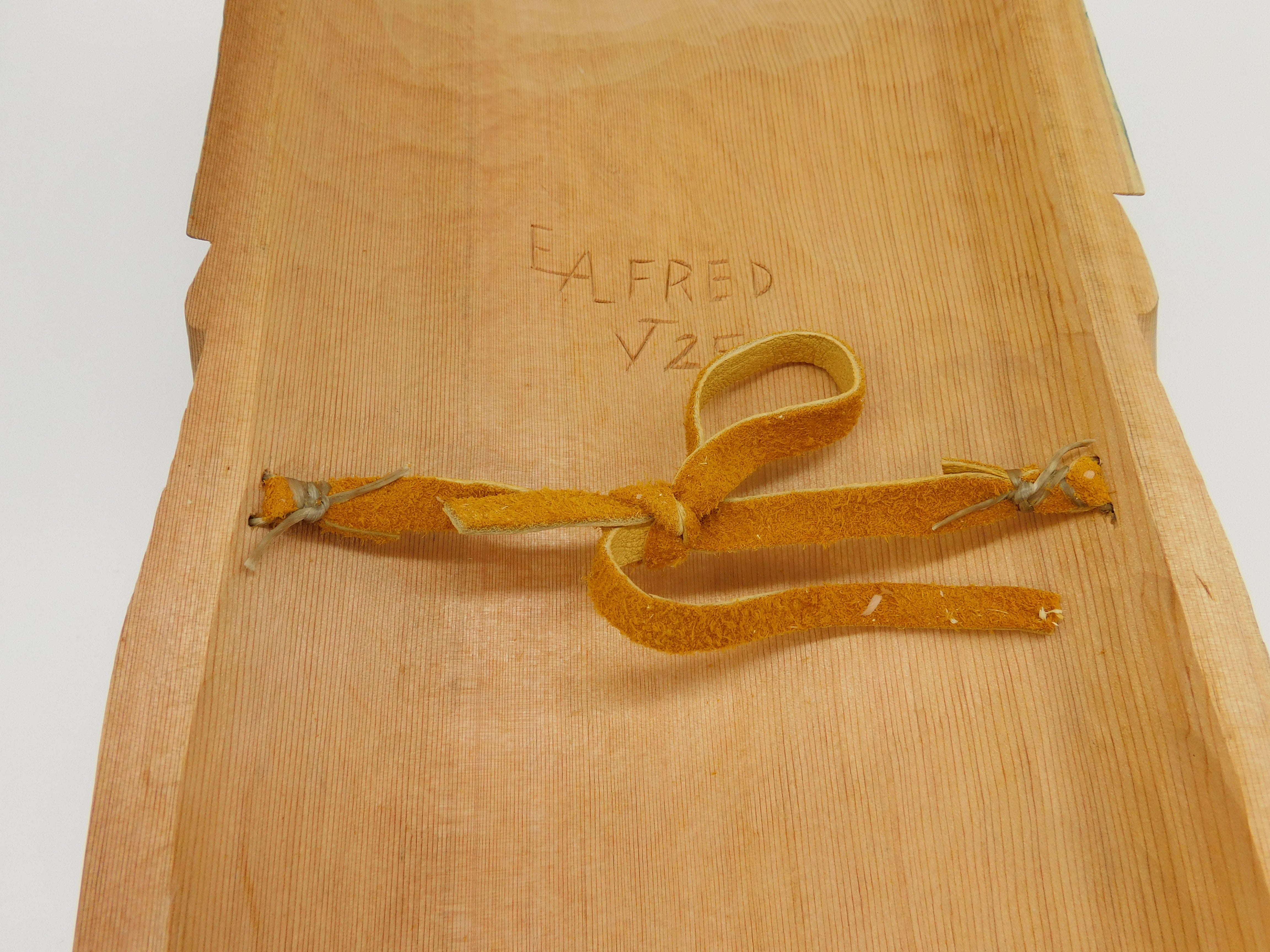 The wood used to make this mask was an off cut from Keith Wolfe Smarch's canoe project with Yukon MacBride Museum