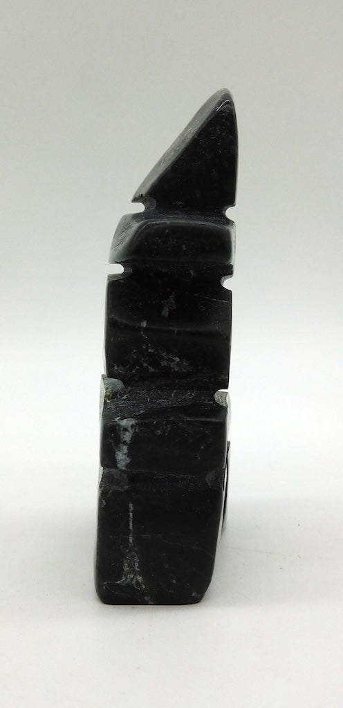 All our Inuit sculptures are carved from a single piece of stone, locally sourced from the carvers community, most commonly Serpentine or Argillite. These stones are carvable but are significantly harder than soapstone.