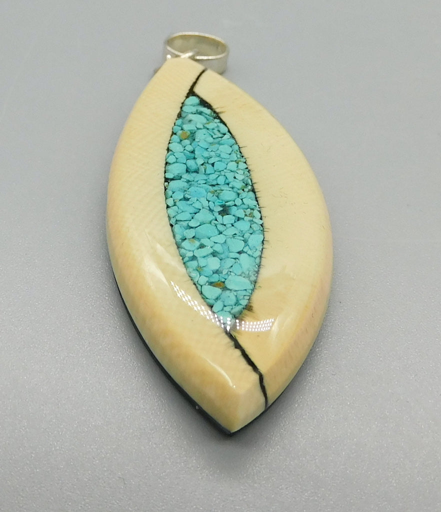 Turquoise & Mammoth Ivory Pendant Necklace (Yuka)
