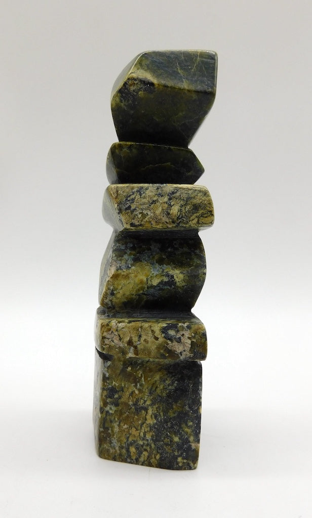 All our Inuit sculptures are carved from a single piece of stone, locally sourced from the carvers community, most commonly Serpentine or Argillite. These stones are carvable but are significantly harder than soapstone.
