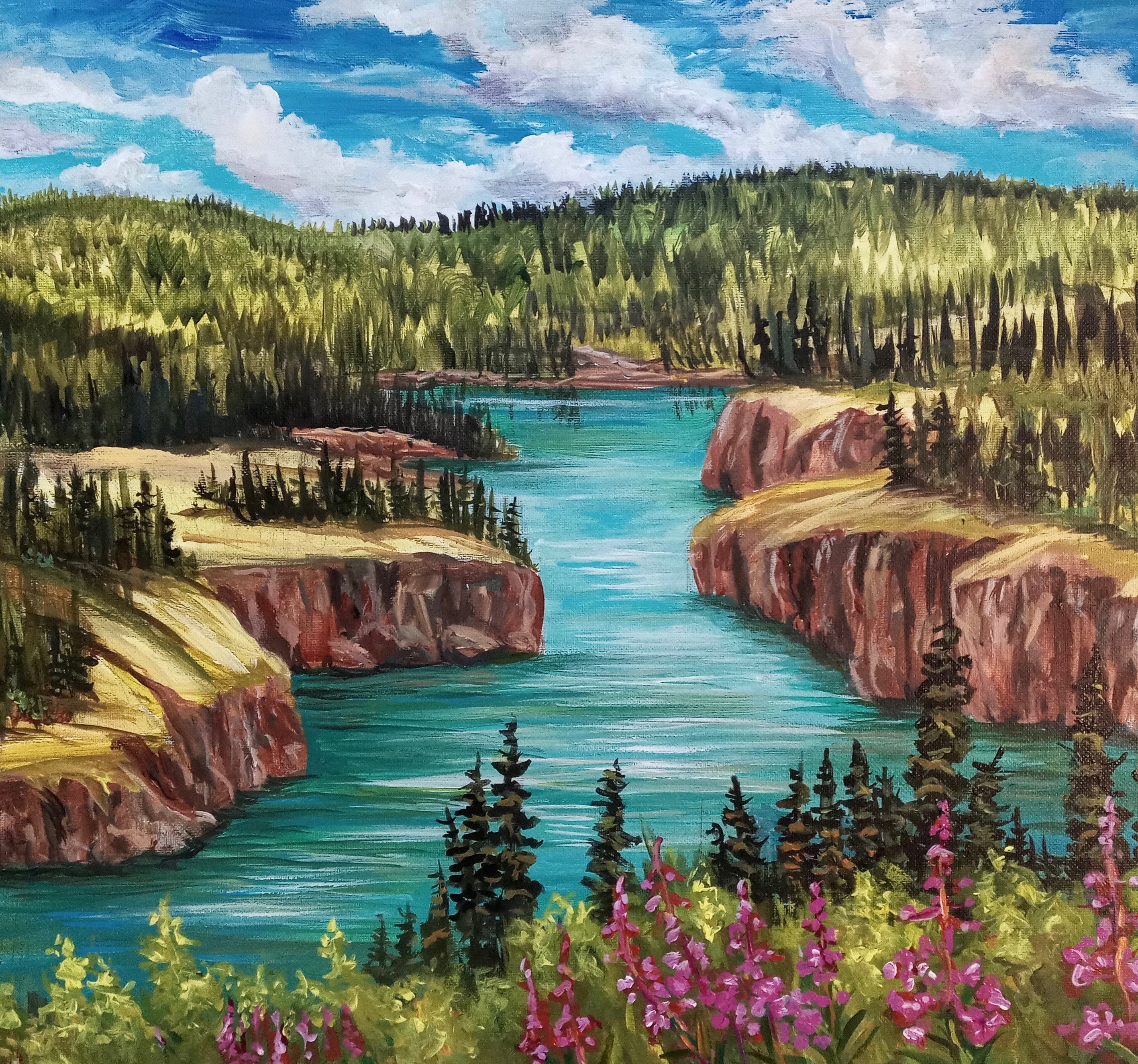 Jackie lives off grid in a cabin in Faro, Yukon, 4 hours North East of Whitehorse. She spends her time painting and enjoying the great outdoors.