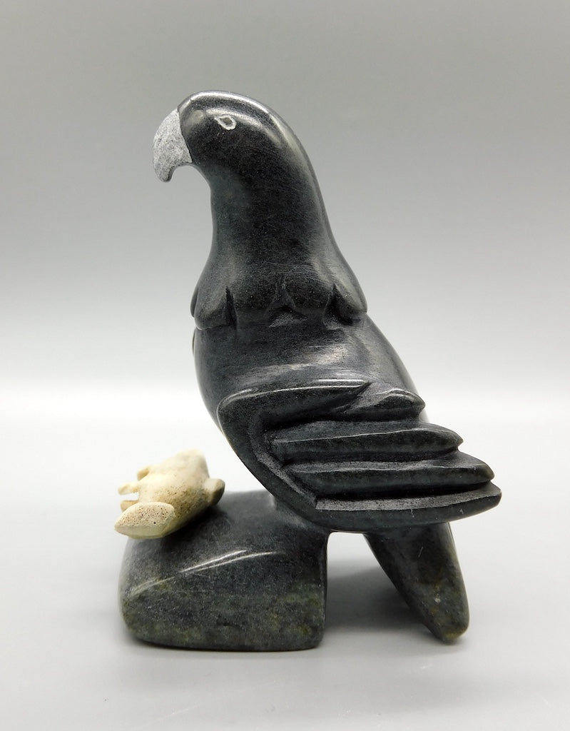 All our Inuit sculptures are carved from stone, locally sourced from the carvers community, most commonly Serpentine or Argillite. These stones are carvable but are significantly harder than soapstone.