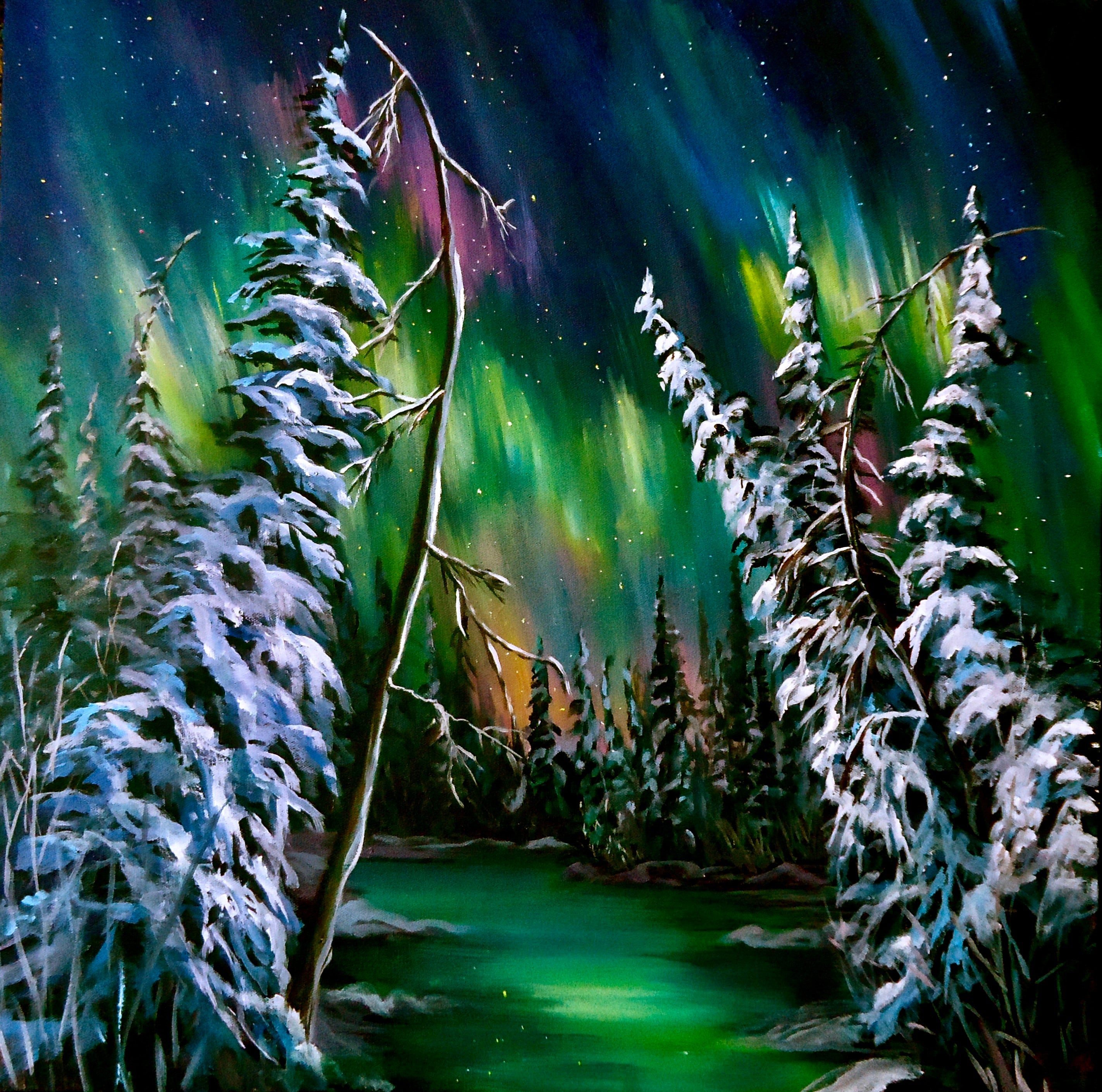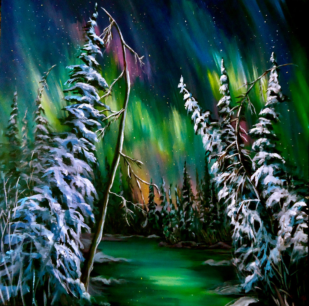 Boreal Aurora Pond- 8x8 Canvas