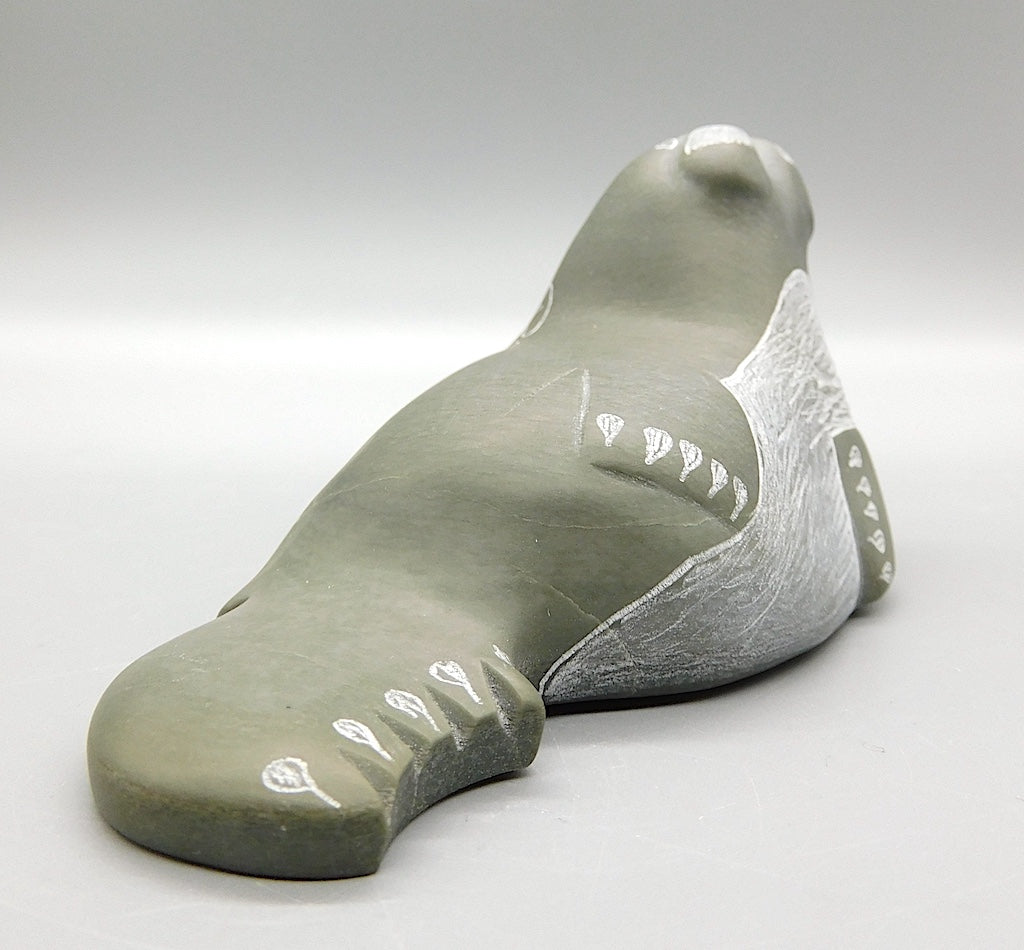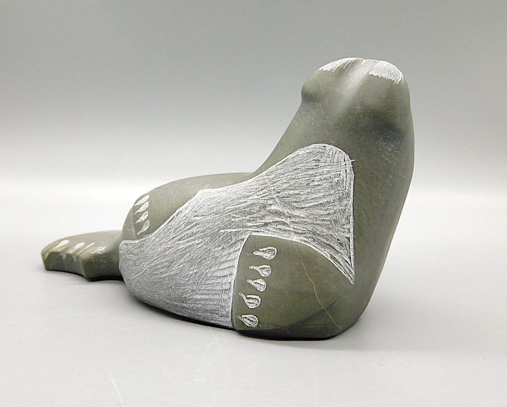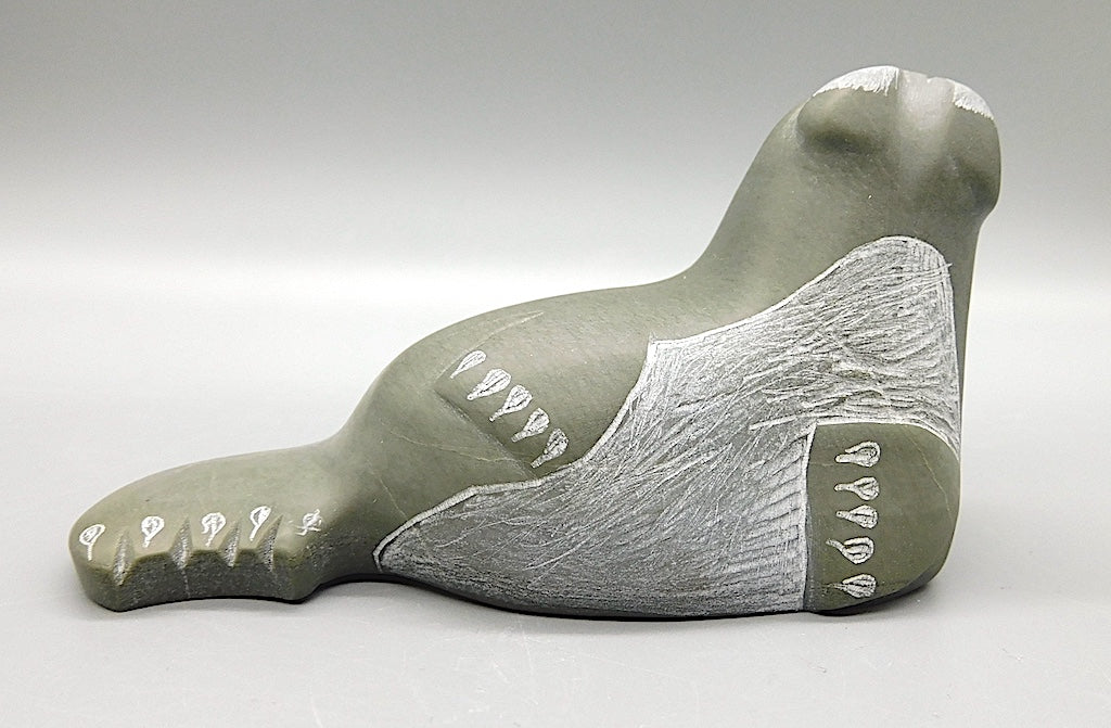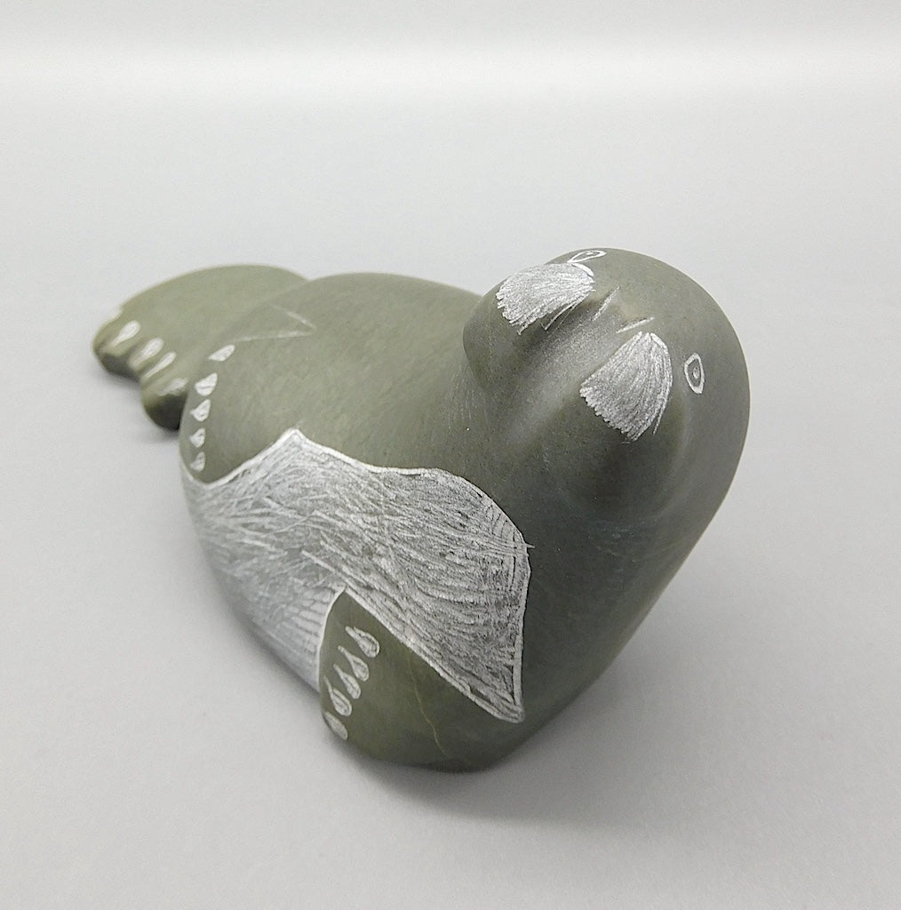 All our Inuit sculptures are carved from a single piece of stone, locally sourced from the carvers community, most commonly Serpentine or Argillite. These stones are carvable but are significantly harder than soapstone.