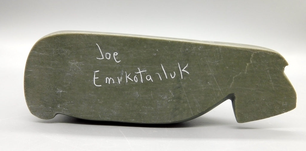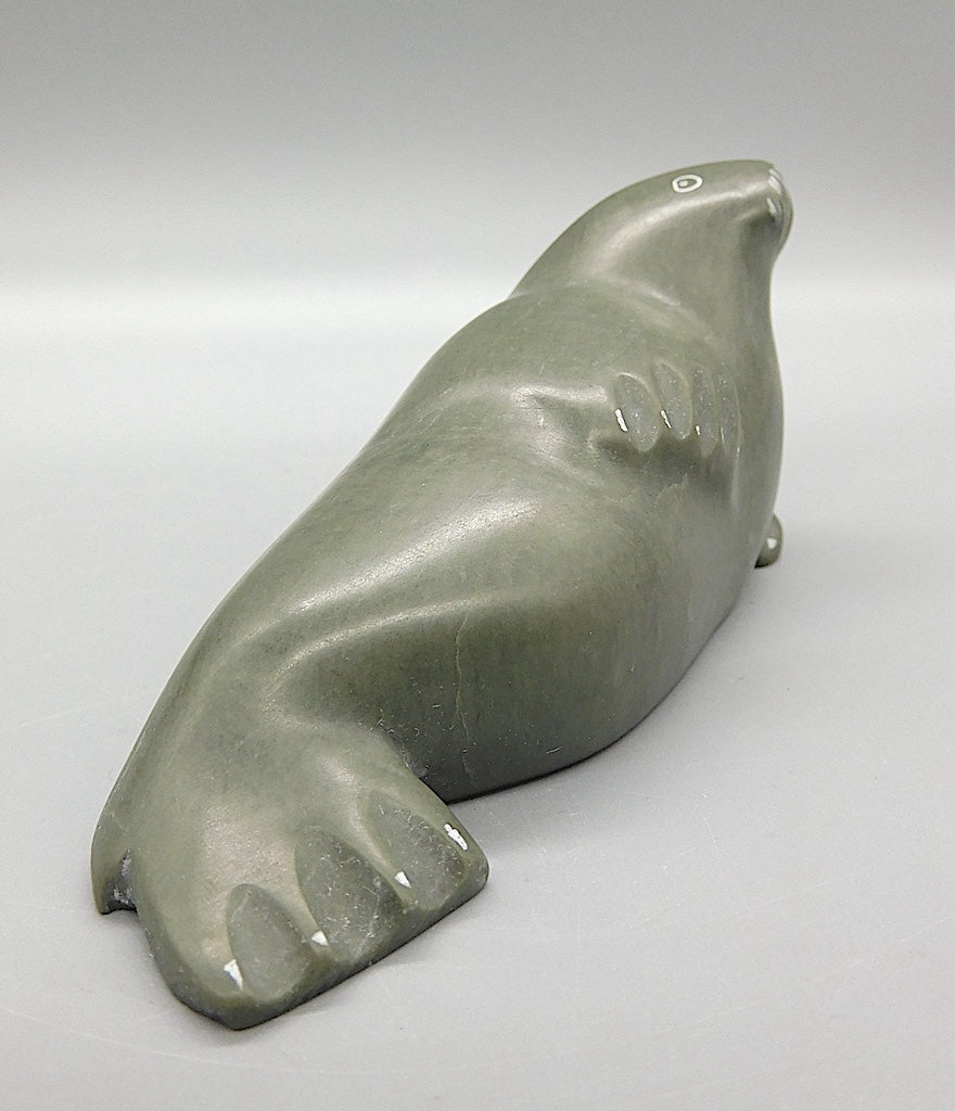 All our Inuit sculptures are carved from a single piece of stone, locally sourced from the carvers community, most commonly Serpentine or Argillite. These stones are carvable but are significantly harder than soapstone.