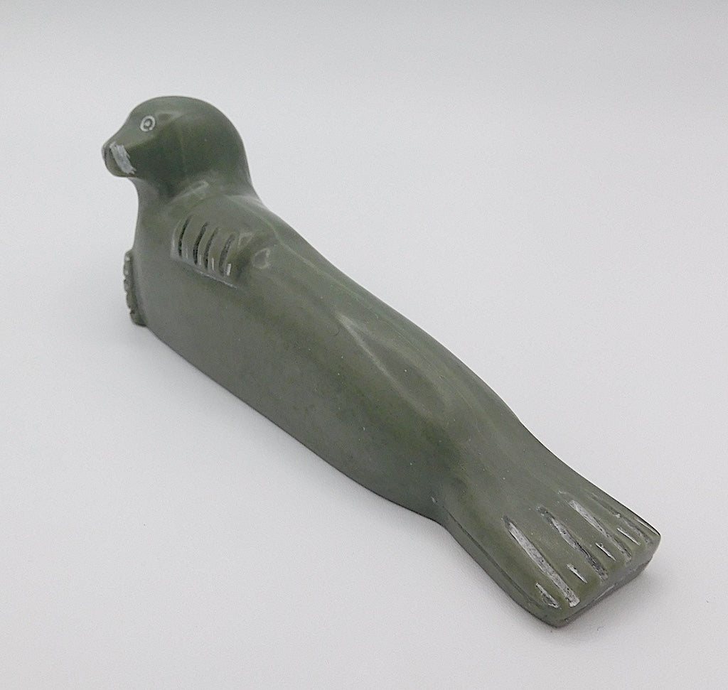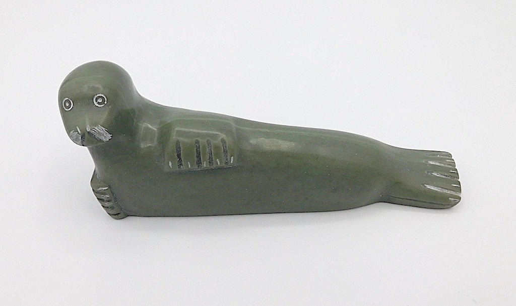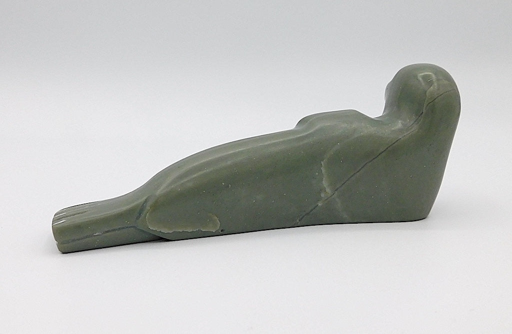 All our Inuit sculptures are carved from a single piece of stone, locally sourced from the carvers community, most commonly Serpentine or Argillite. These stones are carvable but are significantly harder than soapstone.