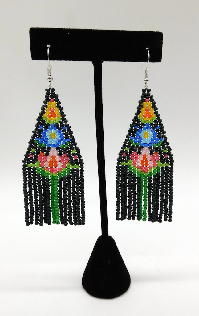 Design: black with yellow, blue and red flowers