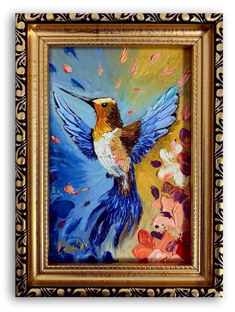 Hummingbird Looking Left - Framed Original Painting - Olya - 4x6