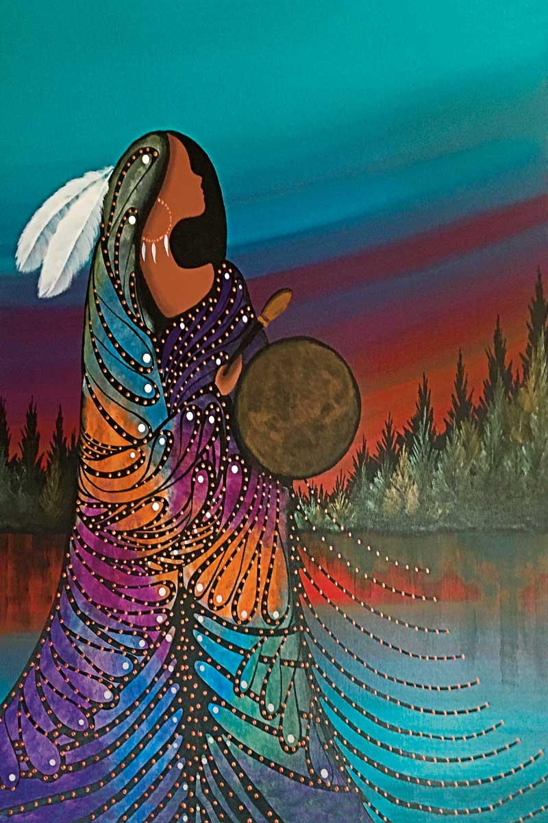 Betty Albert-Licenz was adopted and raised by French Canadian parents in Northern Ontario. Already a skilled artist working with pen and ink, circumstances eventually brought her back to her Native American father, discovering her birthright as a Cree. Betty then began an art business with her father. Her popular dream based images (a Cree tradition) are found all over the world