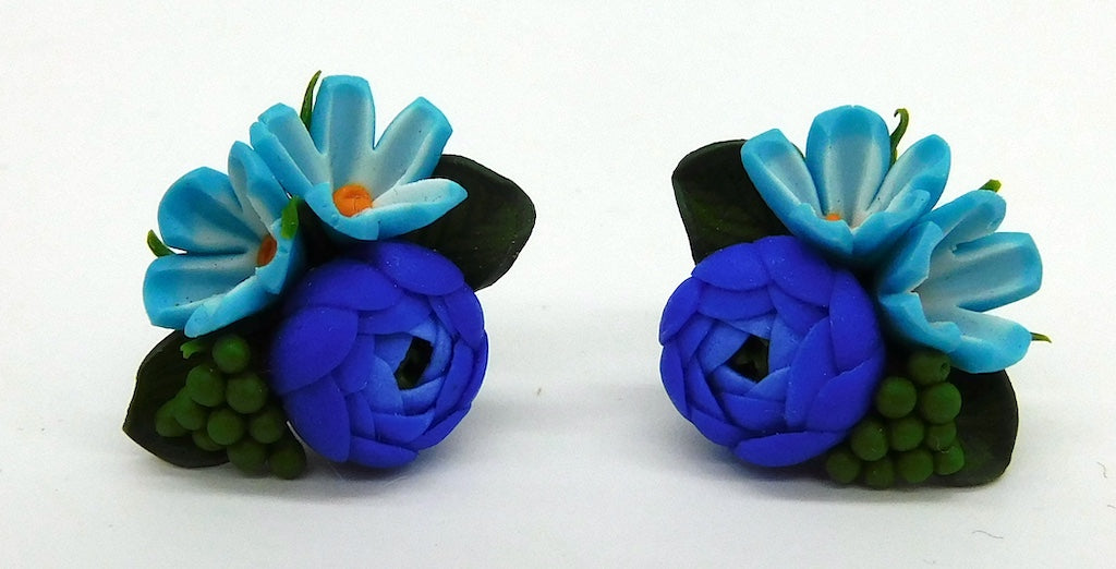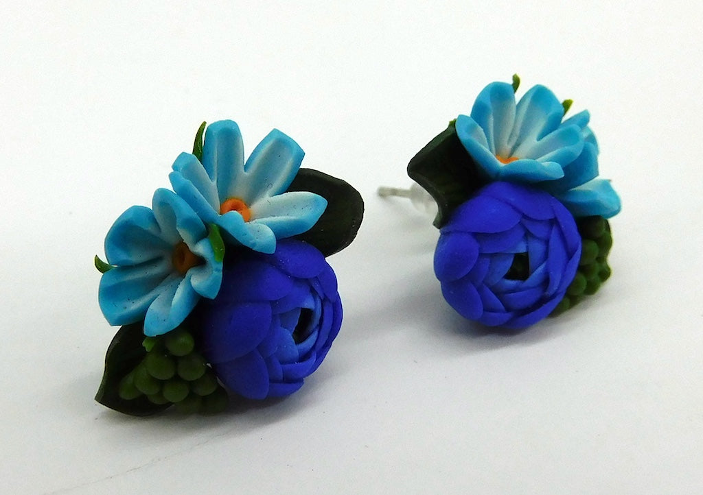 Blue Flowers Stud Earrings