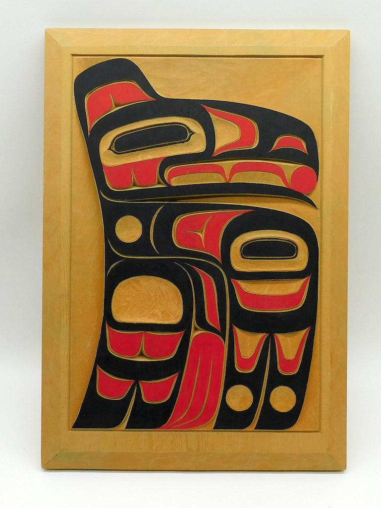 Tlingit artist Mark Preston, worked in a variety of media. Known for minimalist motifs that symbolize clarity, peacefulness, and open-mindedness. His Tlingit name was Tenna-Tsa-Teh.
