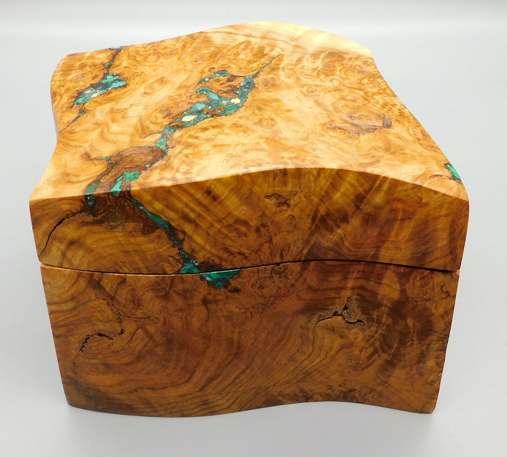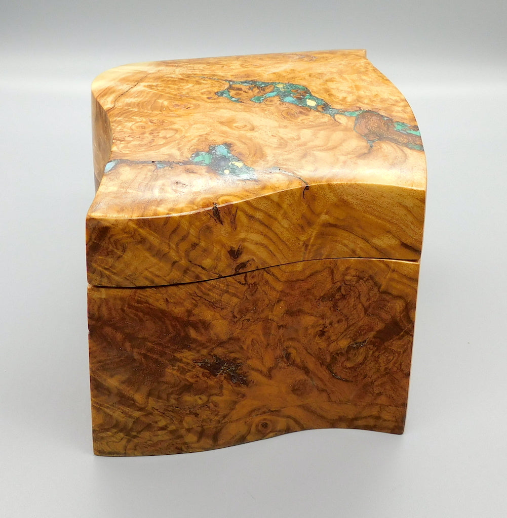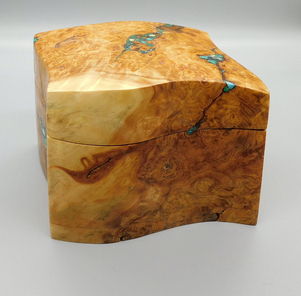 Unique sculptured poplar burl box with felt bottom
