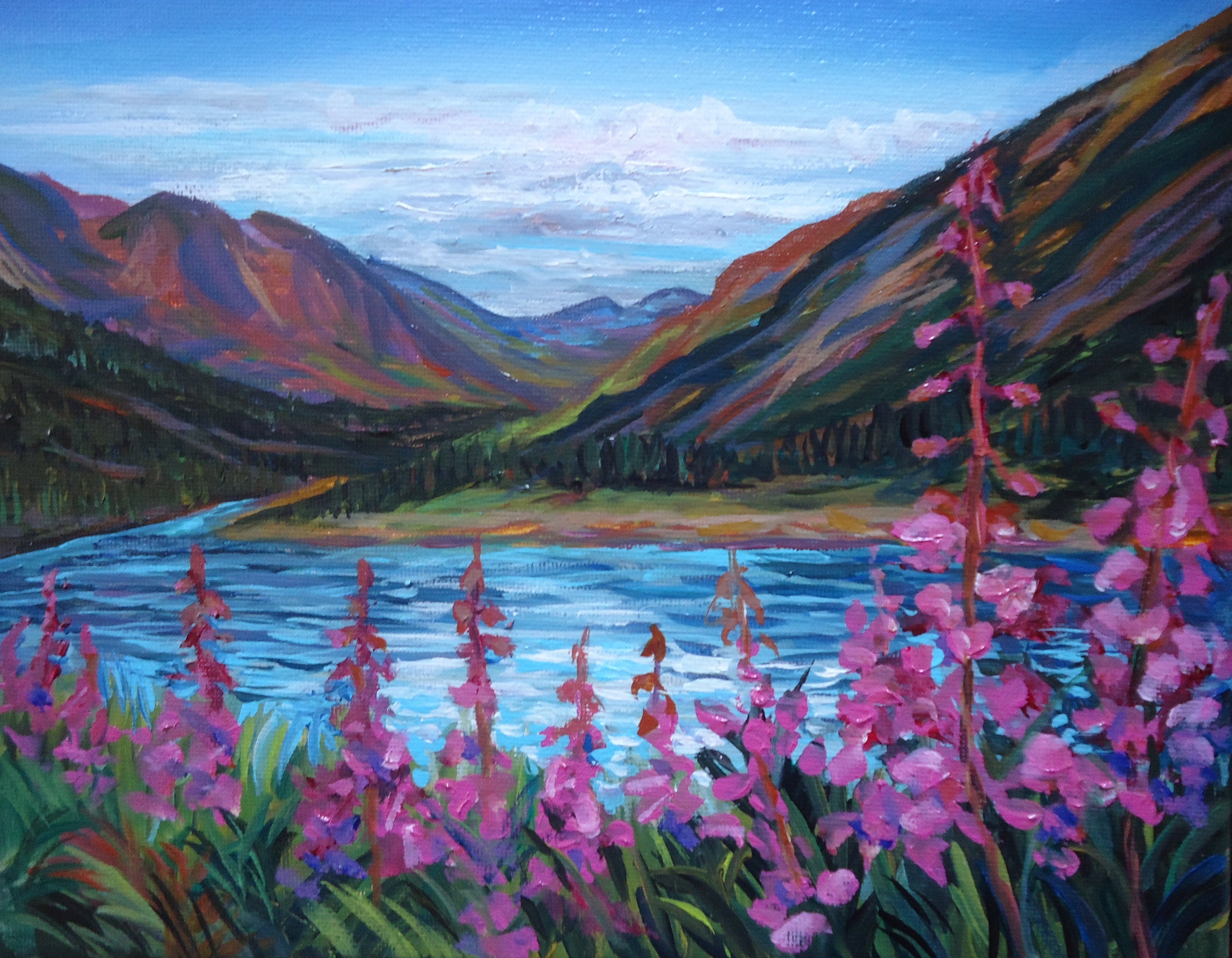 Jackie lives off grid in a cabin in Faro, Yukon, 4 hours North East of Whitehorse. She spends her time painting and enjoying the great outdoors.