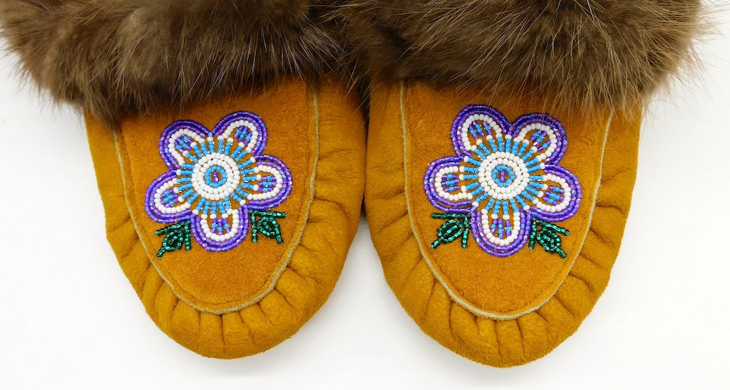 • The word moccasin originates from the Algonquin language. This word was used by settlers and has come to refer to any kind of indigenous slipper. Each First Nation have their own style of slipper that have been in constant creation for generations, generally handed down through one generation teaching the next.