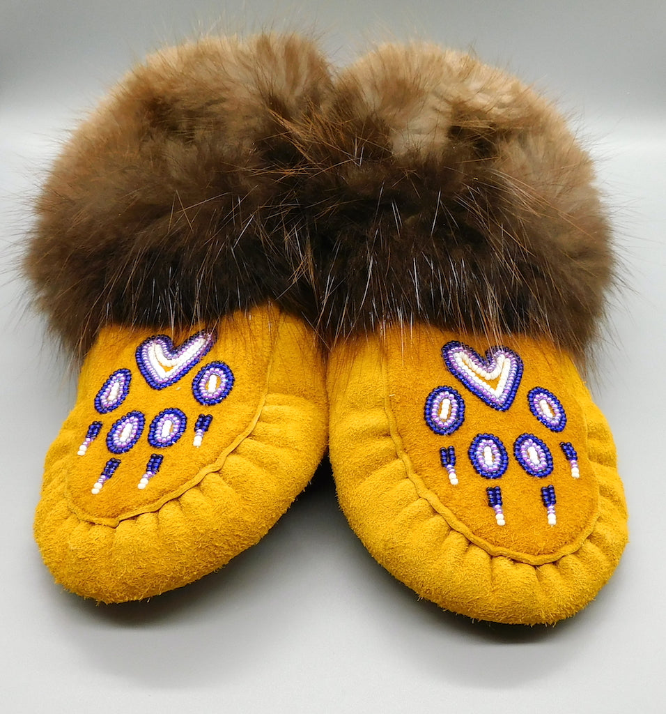 Ladies Beaded Moosehide Slippers - Paw Design Size 8