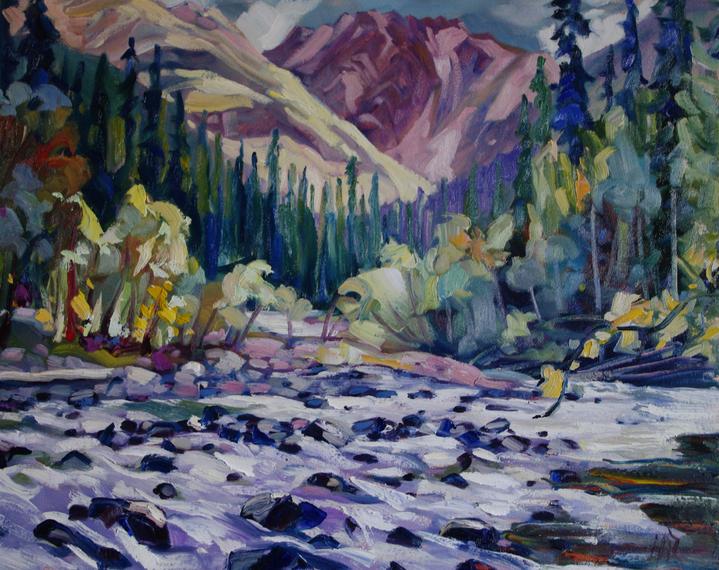 Originally from Montreal, Halin first made his name as an artiat when he moved to Dawson City, Yukon more than forty years ago. He became well known for his depictions of life in Canada’s Klondike, interpreting the beauty and majesty of the remote northern wilderness and capturing it on canvas.