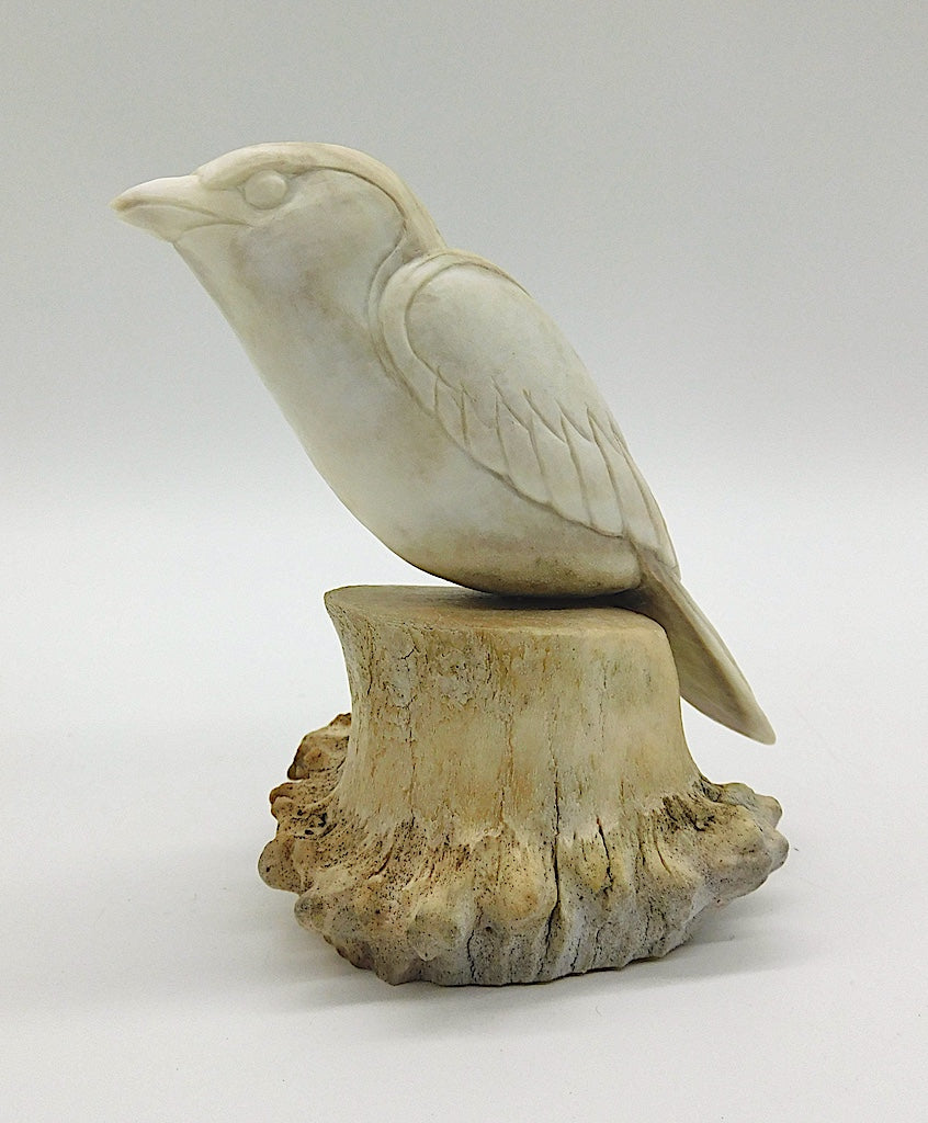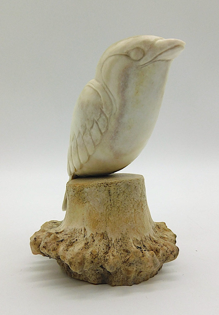 • Maureen Morris has developed a very unique craft. Working in antler and bone, Maureen produces beautiful sculptures  of considerable brilliance, both in design and in craftsmanship. In her strong graceful bird forms, Maureen demonstrates the carver’s unique ability to see one form inside another. A graduate of the Vancouver School of Art, Maureen initially came to the North to carve jade. However, she soon became fascinated with the potential of antler as a carving medium.
