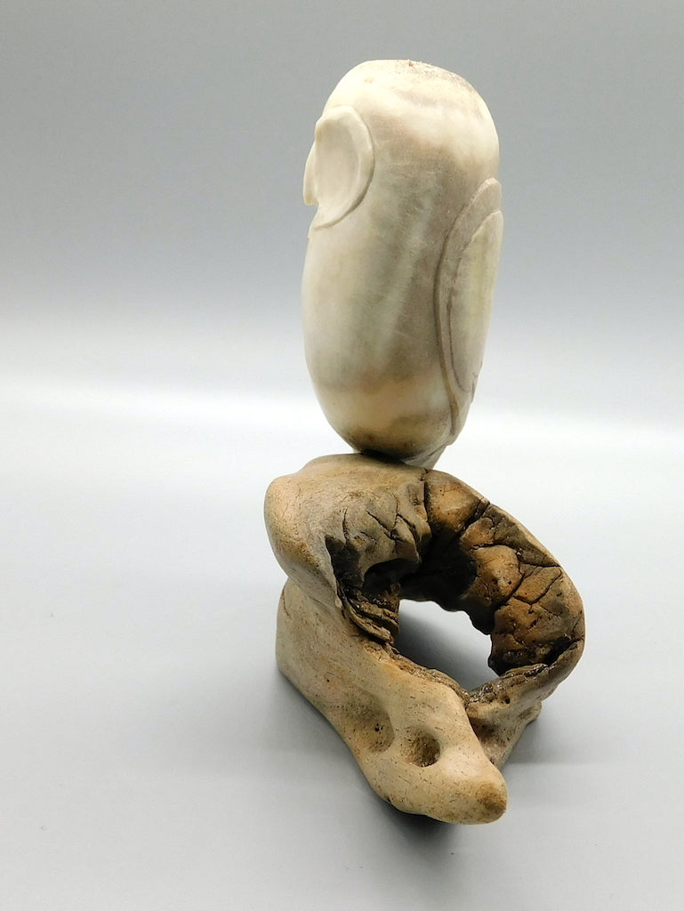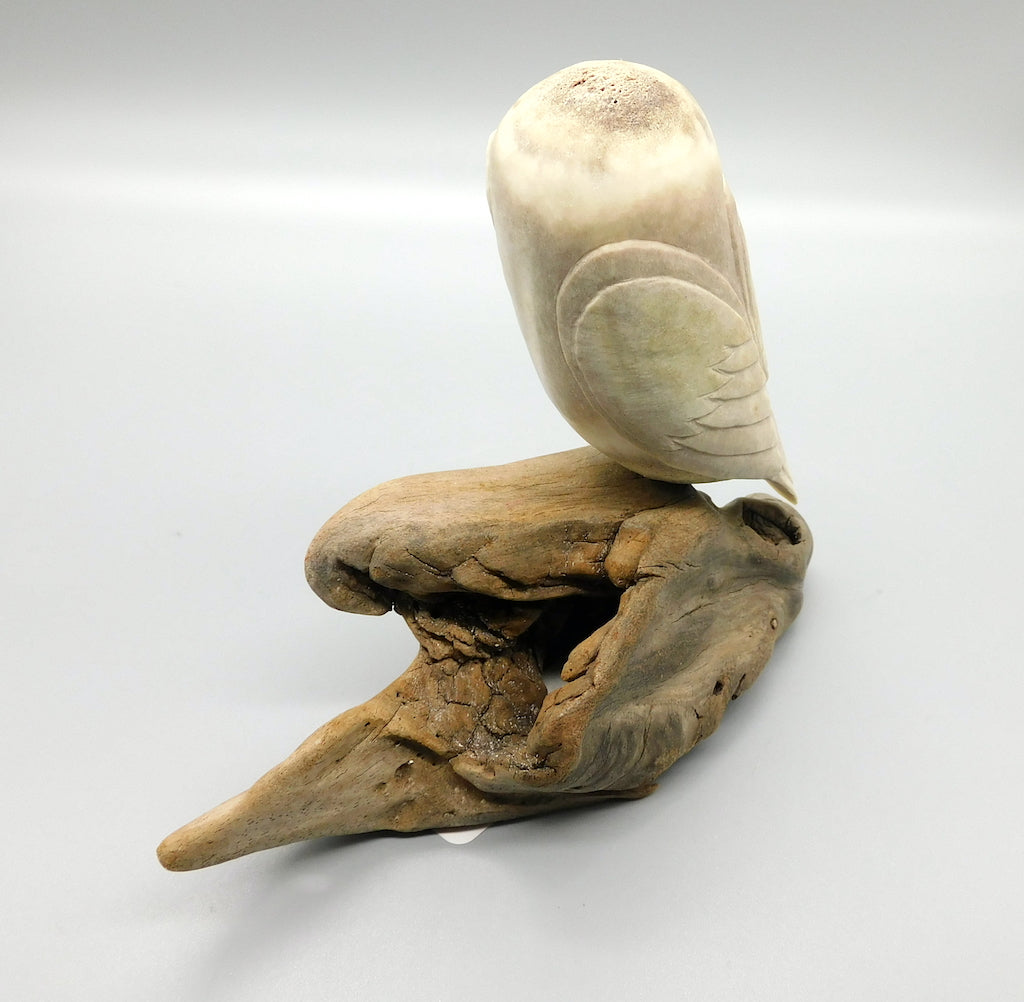 Maureen Morris has developed a very unique craft. Working in antler and bone, Maureen produces beautiful sculptures of considerable brilliance, both in design and in craftsmanship. In her strong graceful bird forms, Maureen demonstrates the carver’s unique ability to see one form inside another. A graduate of the Vancouver School of Art, Maureen initially came to the North to carve jade. However, she soon became fascinated with the potential of antler as a carving medium.