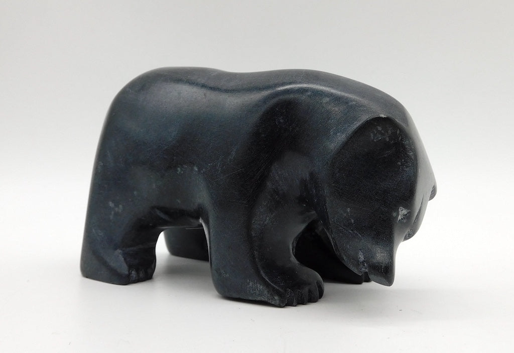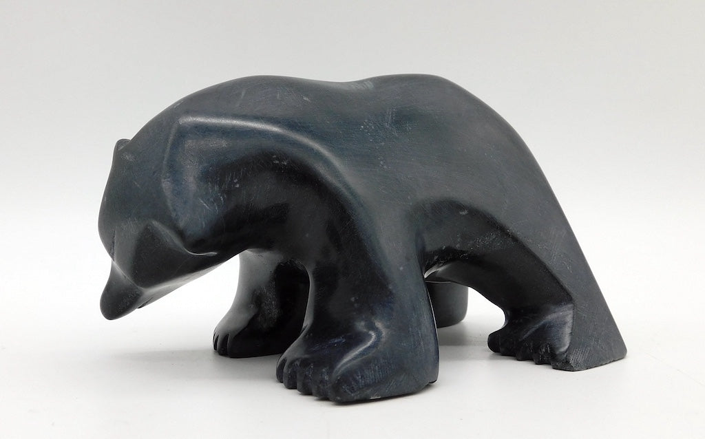 All our Inuit sculptures are carved from a single piece of stone, locally sourced from the carvers community, most commonly Serpentine or Argillite. These stones are carvable but are significantly harder than soapstone.
