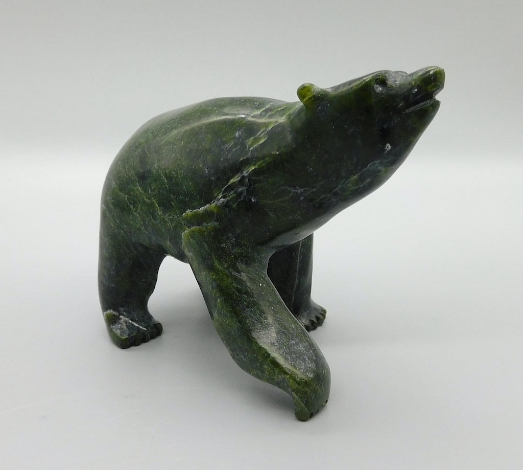 All our Inuit sculptures are carved from a single piece of stone, locally sourced from the carvers community, most commonly Serpentine or Argillite. These stones are carvable but are significantly harder than soapstone.